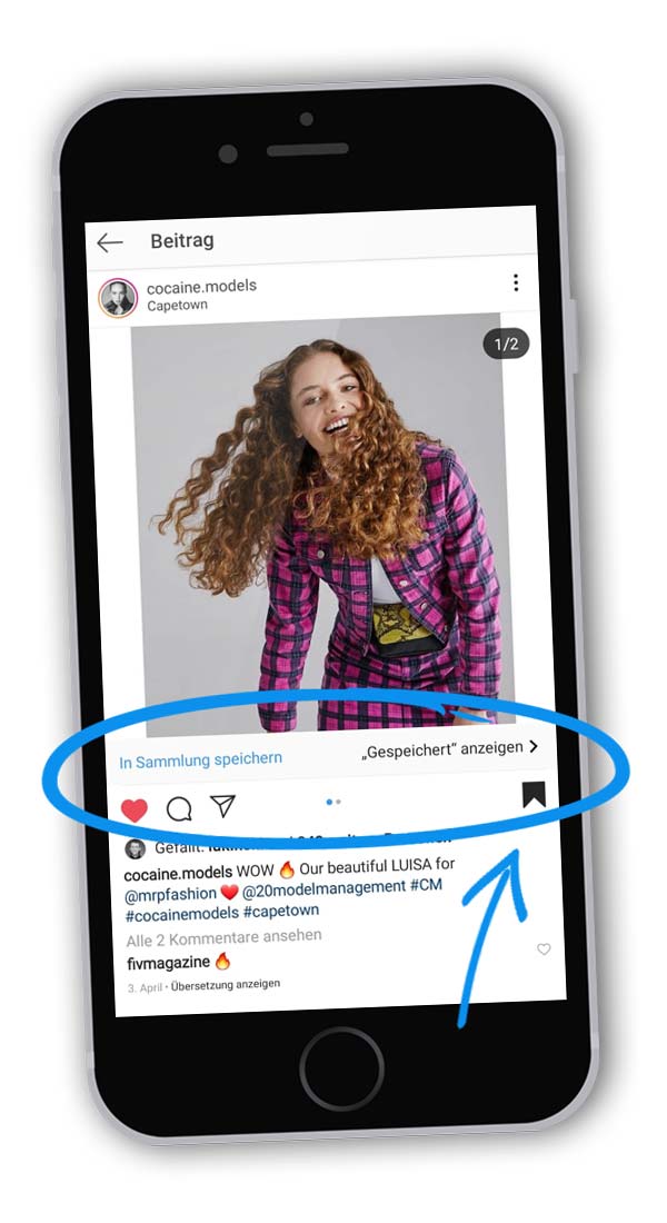 To be able to save images, simply click on the icon below the image. Then go to the photo or video and your saved content. If you are fast, you can then directly select a folder where the photo should be saved. The photos are a constant source of inspiration, for oneself but also for employees or freelancers. Another small instagram tip from everyday life, with a large archive of inspiration one also has good ideas available at moments when one is less creative. For example, if you’re at a Fashion Week just before the first fashion show, you usually don’t have much time to think about creative concepts for Instagram. With a look into the stored photos, you have a lot of ideas and perhaps find a way to directly transform an idea for the current situation.